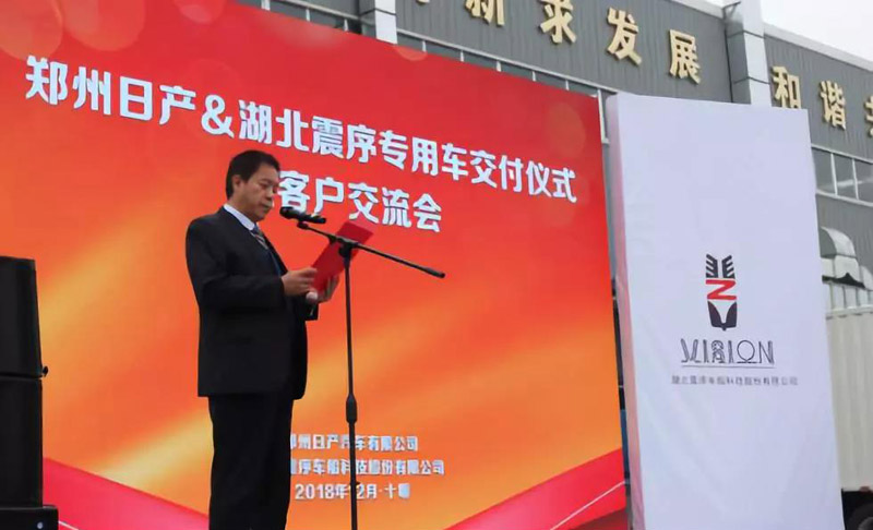 在交付儀式上,公司董事長(zhǎng)劉永生先生發(fā)表致辭,向來(lái)自鄭州日產(chǎn)專用車事業(yè)部的冉瑞利部長(zhǎng)表示了謝意,感謝他一直以來(lái)對(duì)湖北震序公司的支持與信賴;冉瑞利部長(zhǎng)也在隨后的發(fā)言中對(duì)湖北震序公司的設(shè)計(jì)研發(fā)理念與制造工藝給予了很高的評(píng)價(jià),并表示將繼續(xù)加強(qiáng)與湖北震序公司的緊密合作。