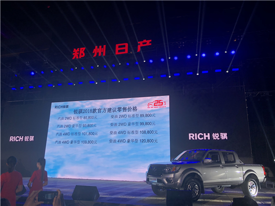 3月24日,鄭州日產(chǎn)在中國“皮卡村”發(fā)源地云南西雙版納,舉行了主題為“新時代、新生活”的銳騏2018款上市發(fā)布會。此次上市的銳騏2018款全系共有16款車型,售價分別為汽油版標箱售價8.58-10.98萬元,長貨箱版售價8.68-11.08萬元;柴油版標箱售價8.98-12.08萬元,長貨箱版售價9.08-12.18萬元。