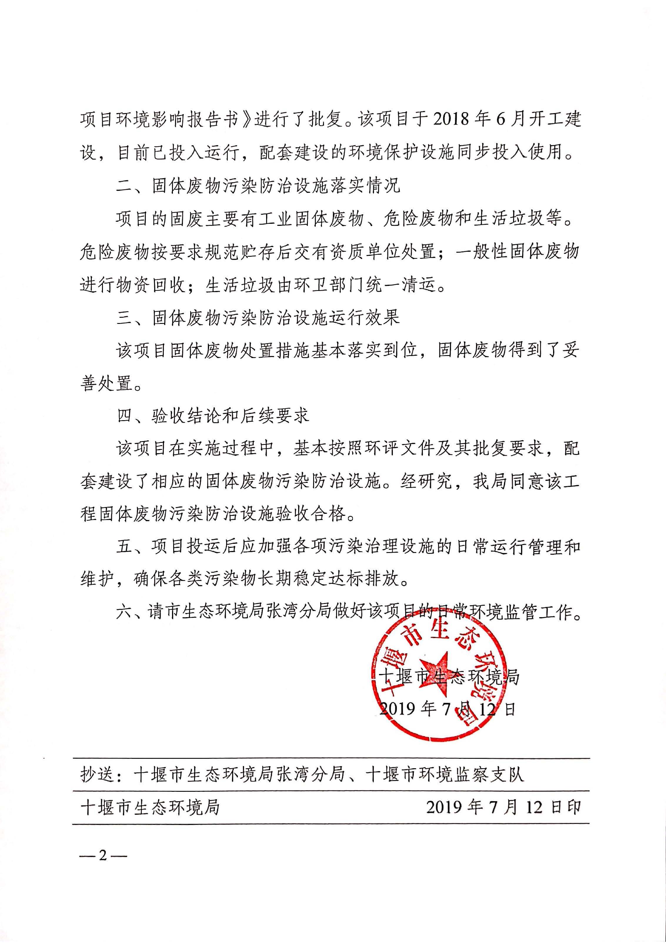 震序車船固體廢物污染防治設(shè)施竣工環(huán)境保護(hù)驗(yàn)收意見函